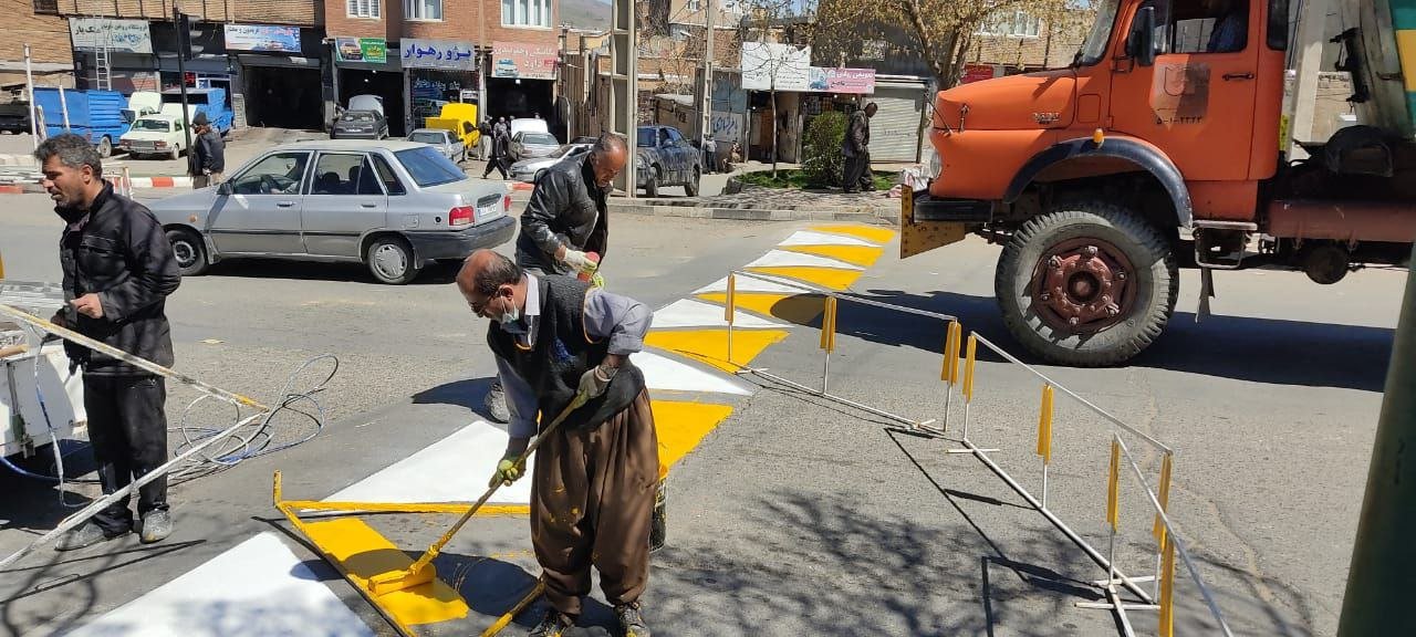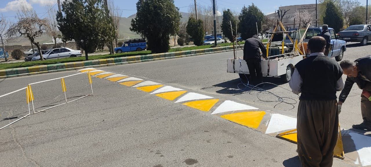 عملیات خط کشی خیابان ها و سرعتکاه های سطح شهر