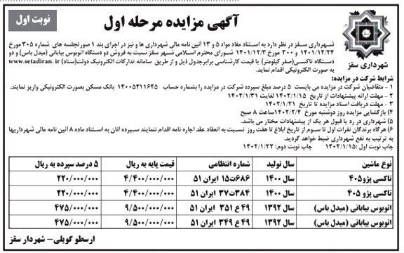 فروش 2 دستگاه اتوبوس (میدل باس) و 2 دستگاه تاکسی نو (صفر)