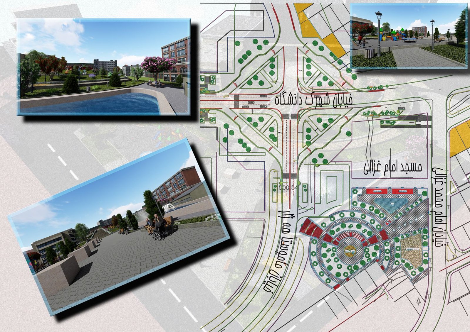 -طراحی بوستان امر به معروف و نهی از منکر در زمینی به مساحت  5400 متر مربع واقع در شهرک دانشگاه خیابان ماموستا هه ژار – شمس تبریزی