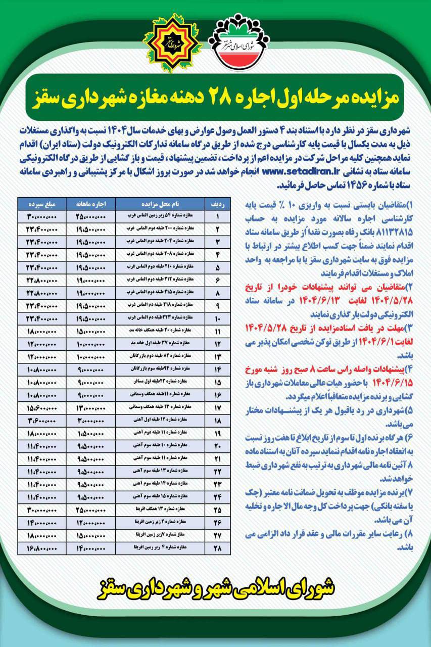 آگهی مزایده 28 دهنه مغازه شهرداری به صورت اجاره