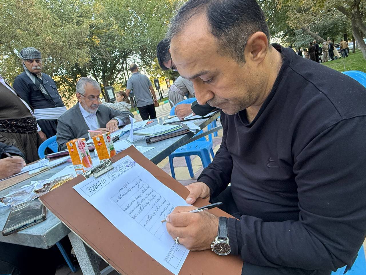 بههمت انجمن خوشنویسان سقز و با همکاری شورای شهر و شهرداری سقز و اداره فرهنگ و ارشاد اسلامی، آیین خوشنویسی و مسابقهی خط تحریری با عنوان «مهر ماندگار» عصر روز جمعه در پارک مولوی کورد، گذر هنری استاد عمر فاروق برگزار شد.