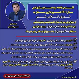 شهردار سقز از تقدیم لایحه بودجه پیشنهادی سال ۱۴۰۱ این نهاد با ۱۴۵ درصد افزایش نسبت به سال جاری -معادل ۳۰۰۰ میلیارد ریال- به شورای اسلامی شهر خبر داد.